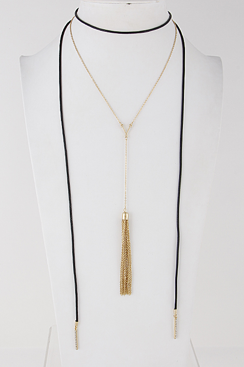 • * Multi Layer Long Thin Choker Necklace With Tassel 6ICD9 * 12" approx.