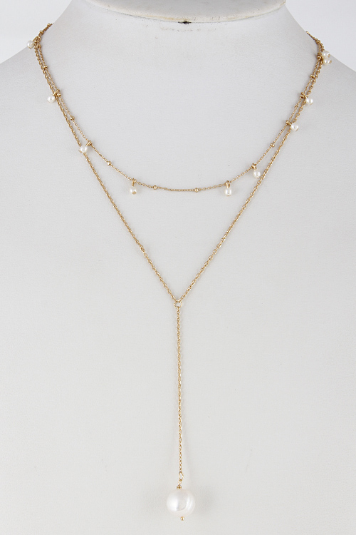 • * Multi Layered Necklace With Faux Pearl 6FBG7 * 16" approx.