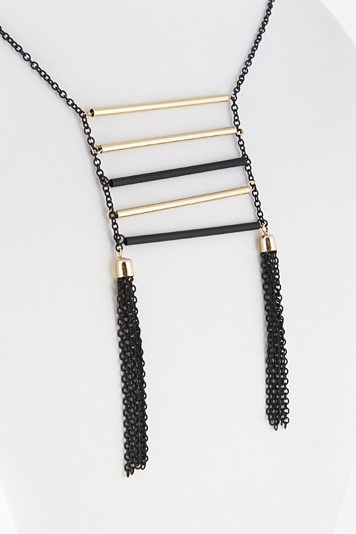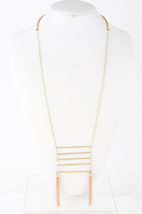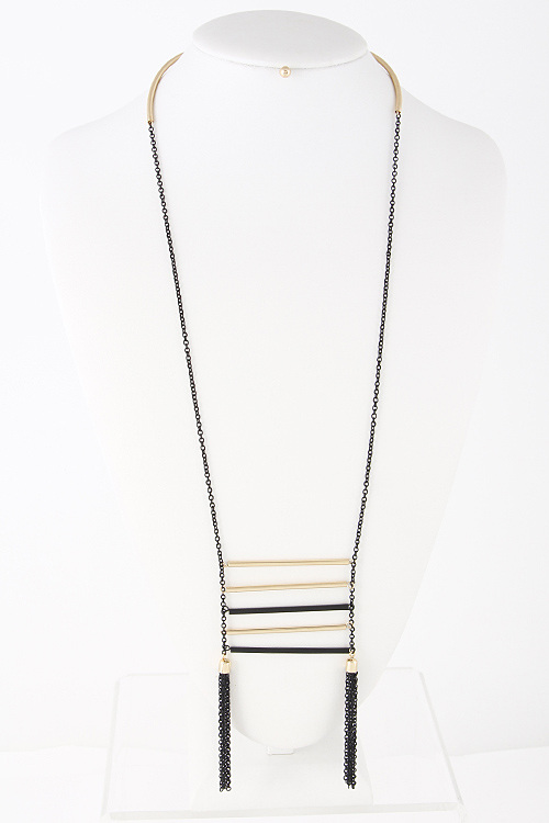 • * Bar Layered Chain Tassel End Long Necklace 5FBI4 * 26 x 5" approx.