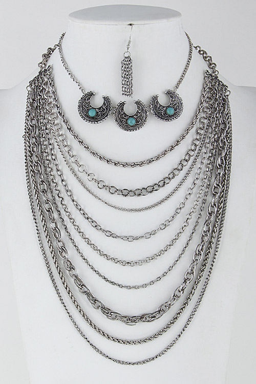 • * Crescent Multi Layer Necklace Set 6HCD4 * 1.2 x 18" approx.
