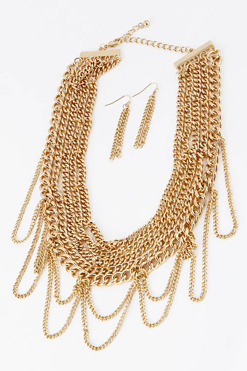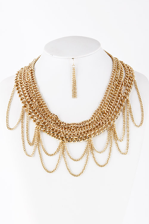 • * Multiple Chain Layered Chandelier Statement Necklace 5CCE3 * 24" approx.