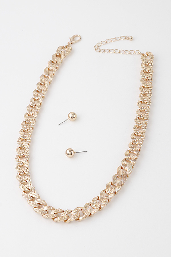 - * Aztec Pattern Diamond Cut Chain Necklace