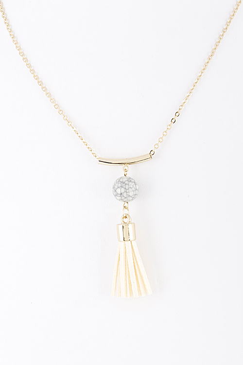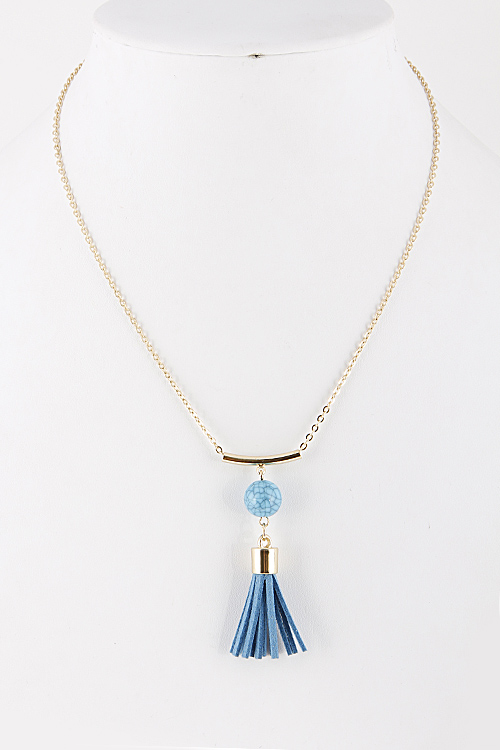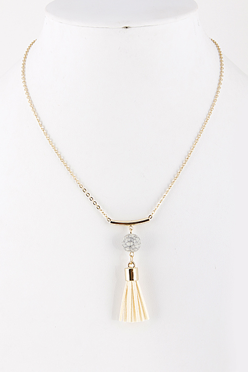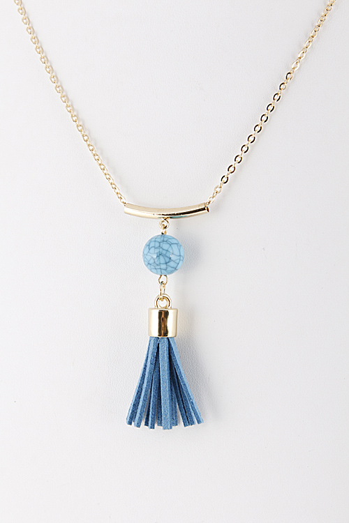 - *Long Pendant Necklace with Faux Stone and Tassel Detail * 16" approx.