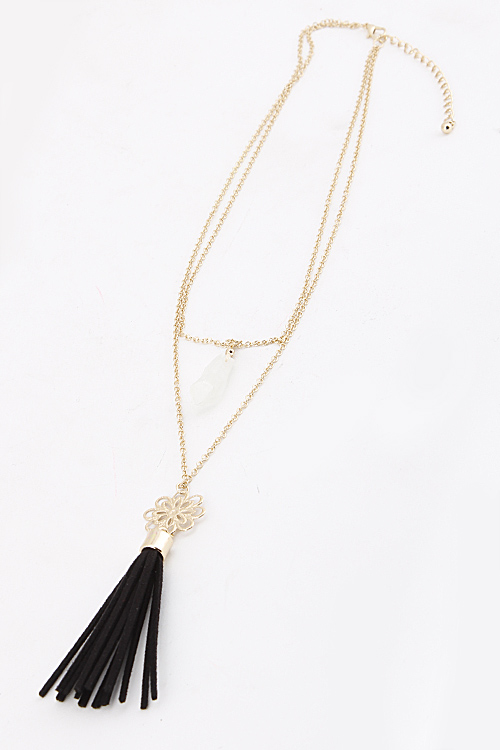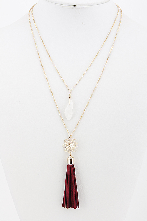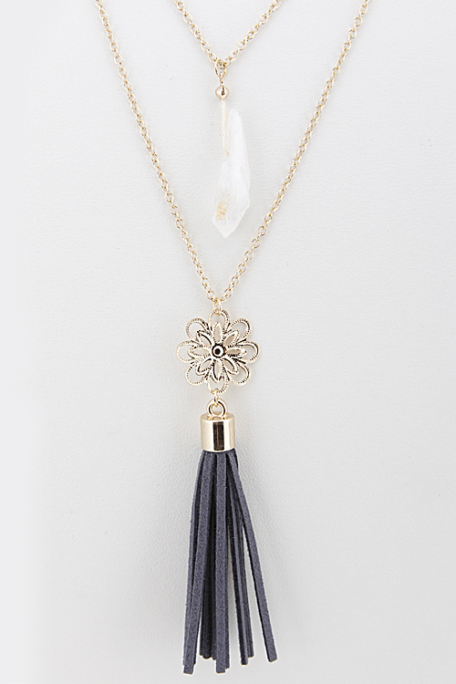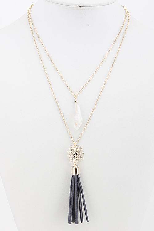 • * Flower Charm Tassel Necklace with Faux Stone Detail 5KAE5 * 20X3" approx.