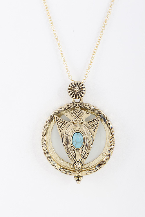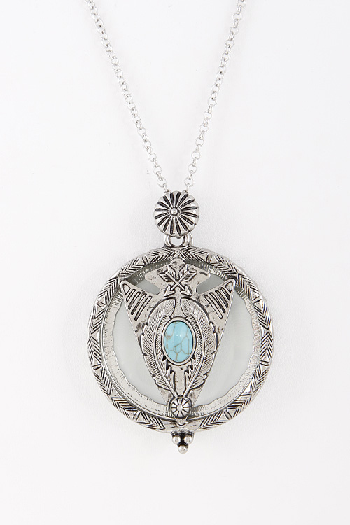 - *Western Arrow and Circle Long Pendant Necklace 5ICF1 * 30*2" approx.