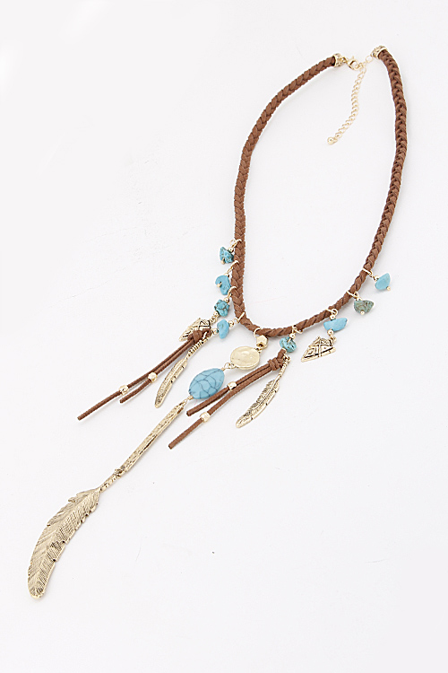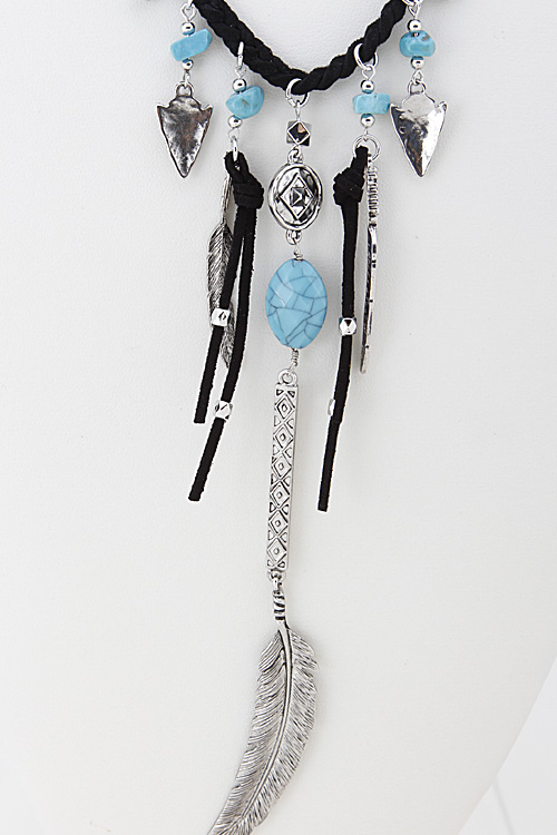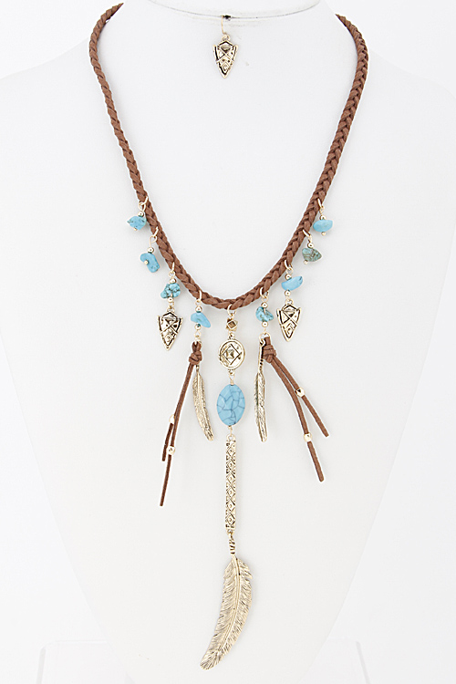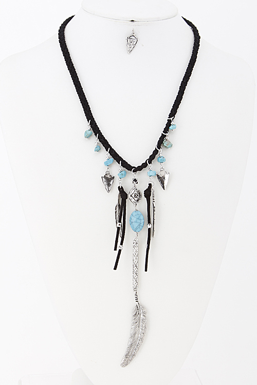 • * Tribal inspired Necklace Set with Feather and Arrow Charms 5JCG8 * 9X7" approx.