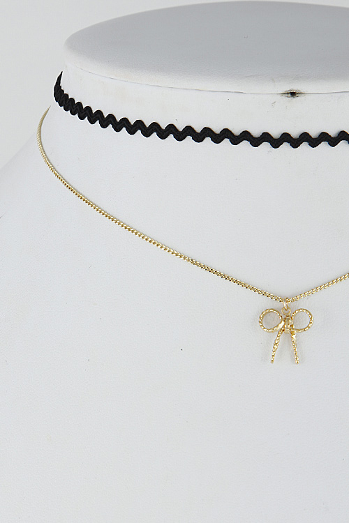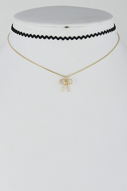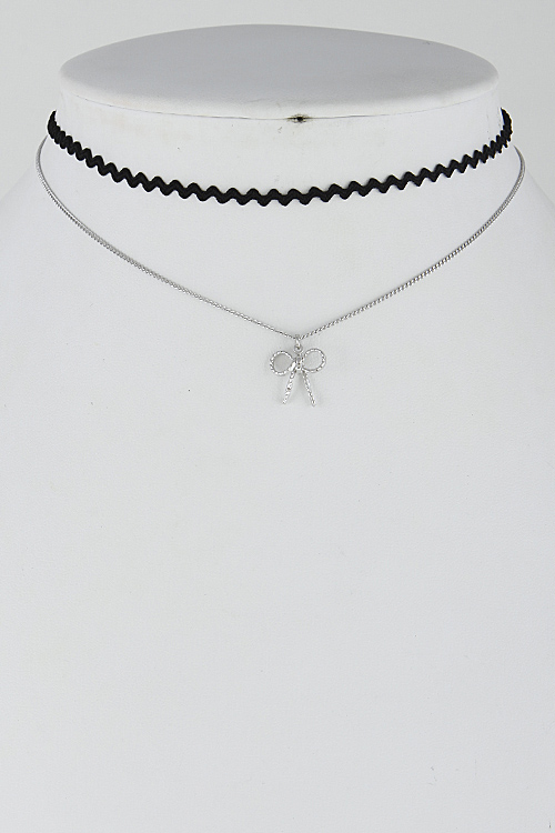 • * Elegant Wavy Bow Multi Layer Choker 6HCE7 * 12" approx.