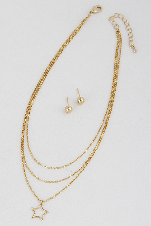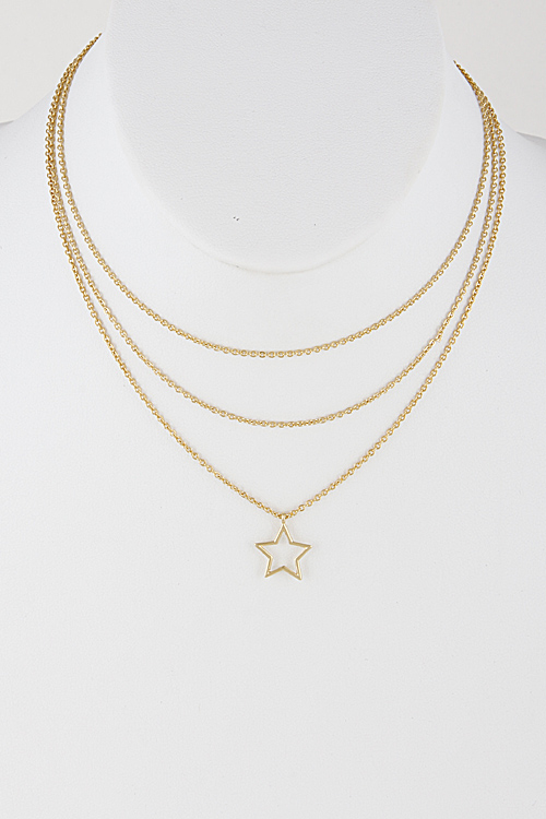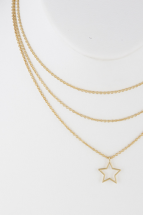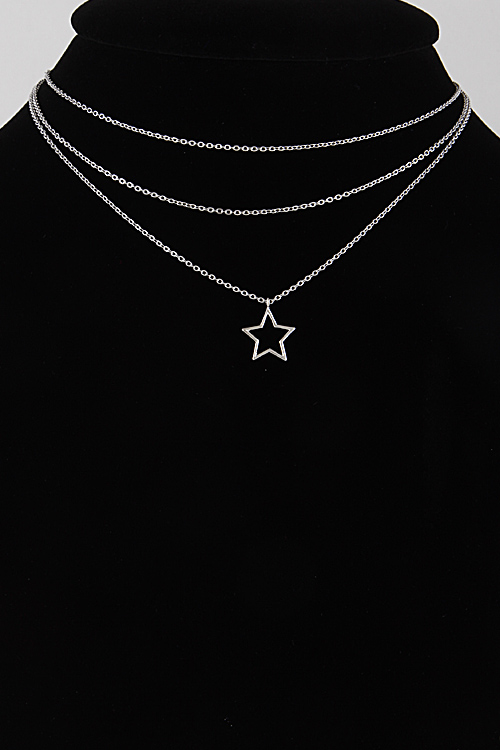 • * Three Line Layer Choker Necklace with Star Pendant 7EBB7 * 12" approx.