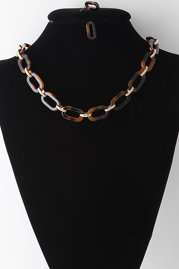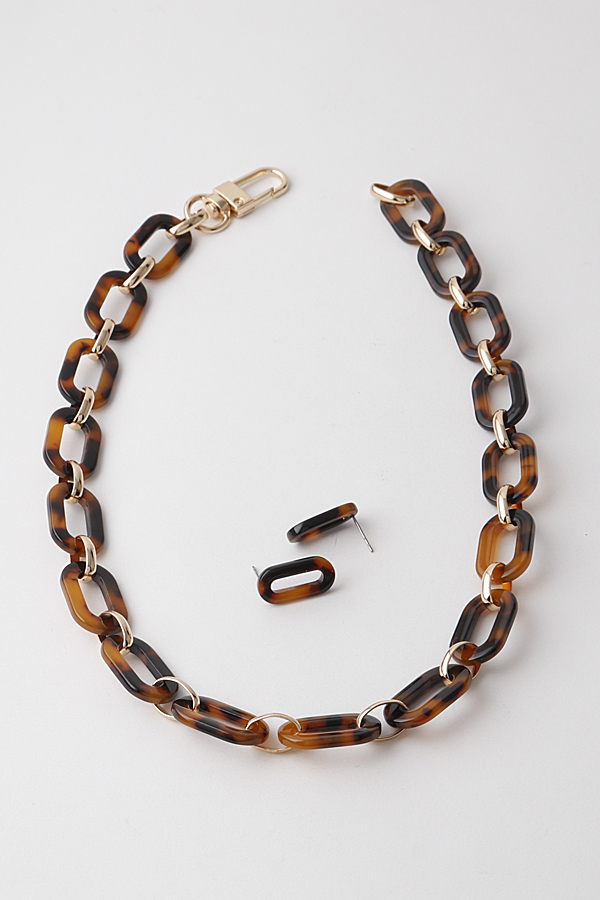 - * Marbled Link Chain Necklace N Earrings Set