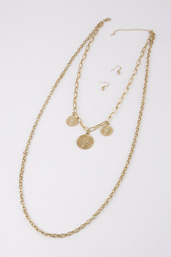 - * Layered Coin Mixed Chain Necklace 8LAD8