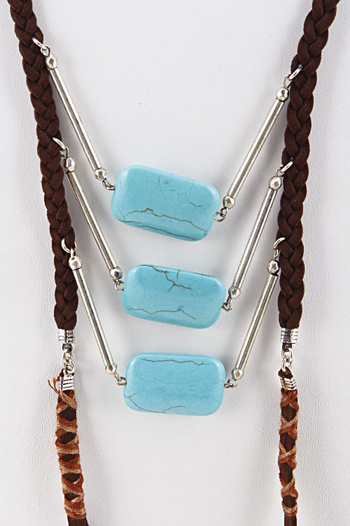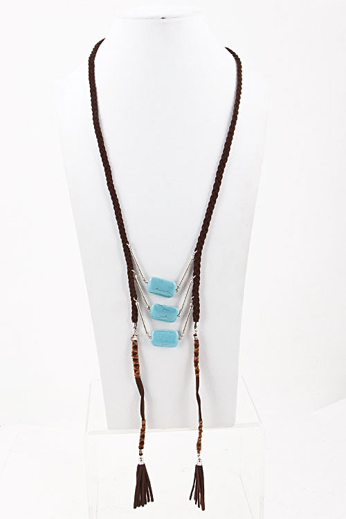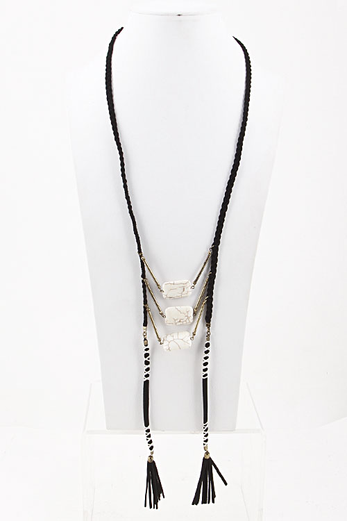 - * Stone Layered Tassle Necklace 5IBH9 *28"X 9" approx.