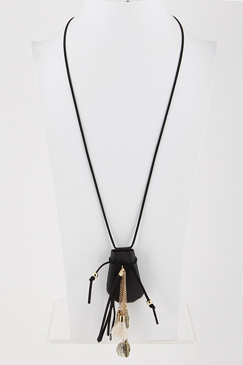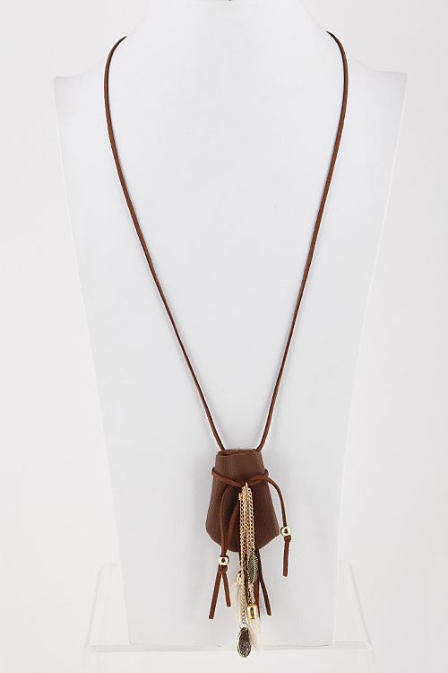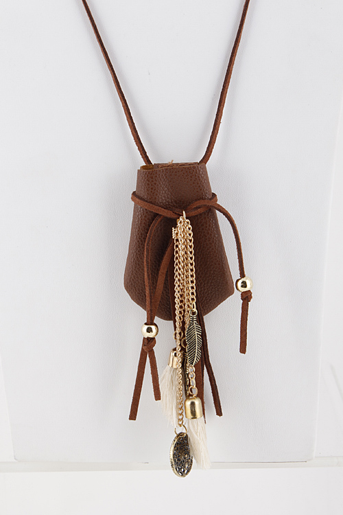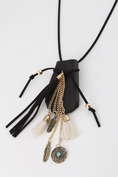 - * Mixed Tribal Charm Necklace with Small Pouch Detail 5JAC9 * 30 x 4.5" approx.