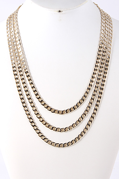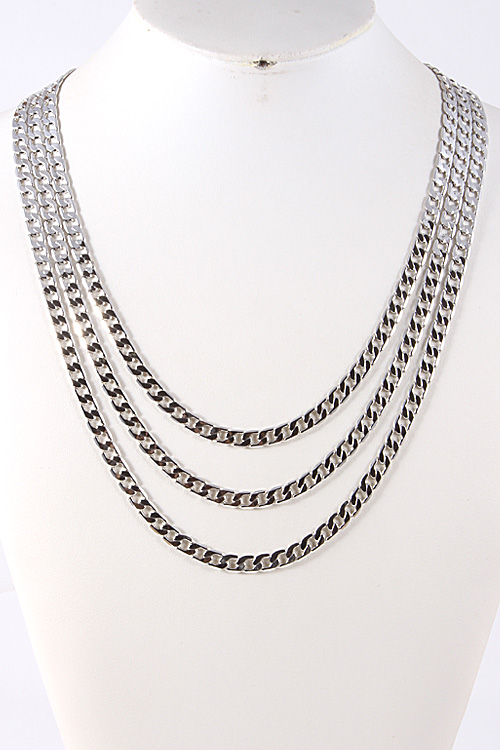 • * Three Layer Simple Chain Necklace 5BAC5 * 24" approx.