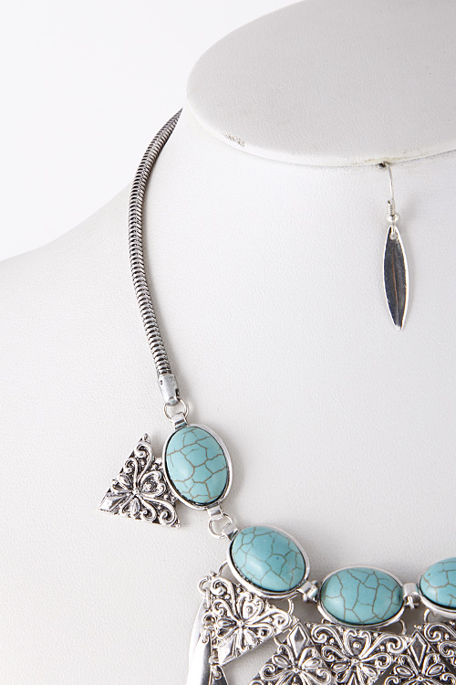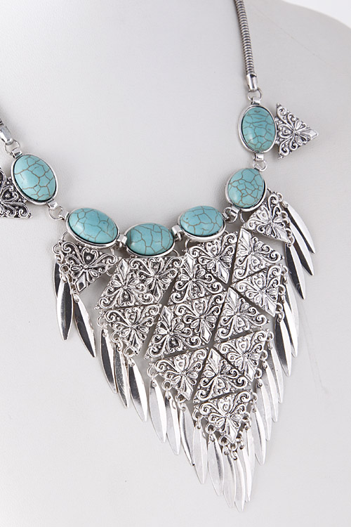 • * Filigree Carved Triangle Statement Necklace 5EBE3 * 14 x 4.5" approx.