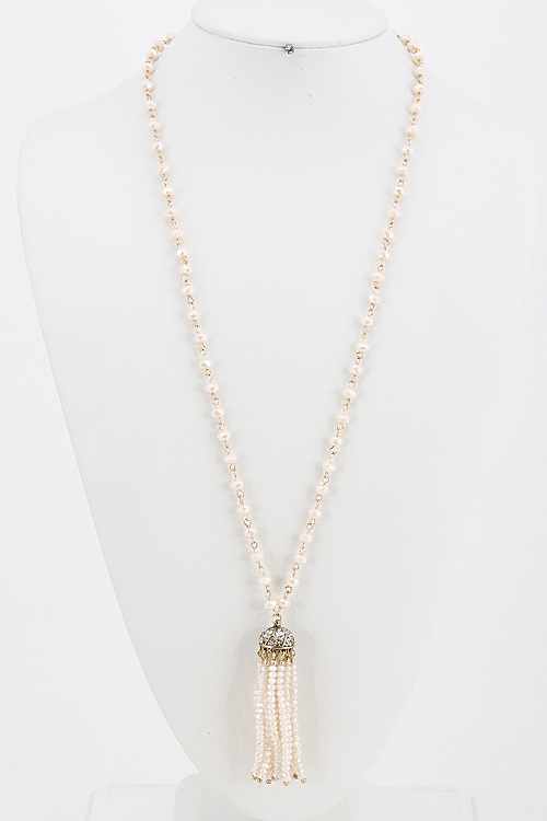 • * Beaded Detail Necklace with Tassel Detail Charm 5JBF1 * 28x3" approx.