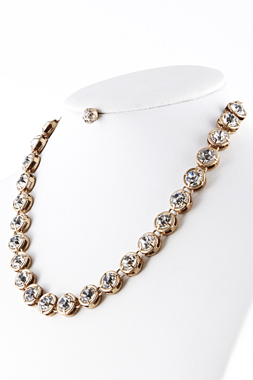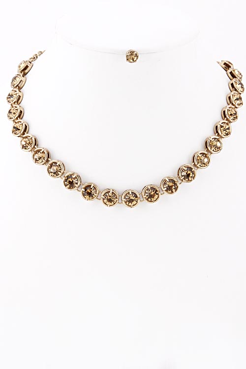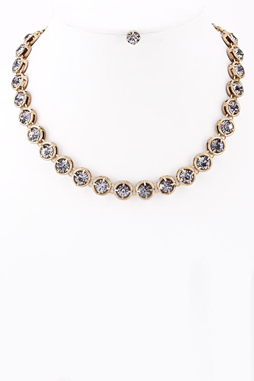 • * Round Shape Rhinestone Linked Necklace 5HBC5 * 12 x 1"approx.