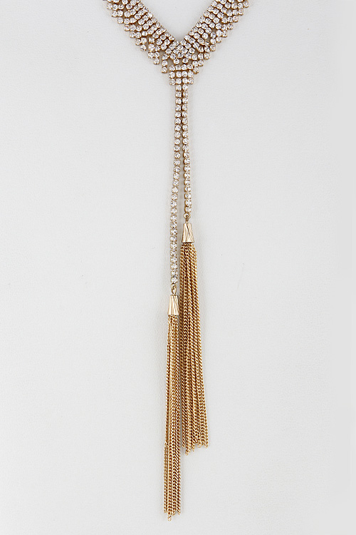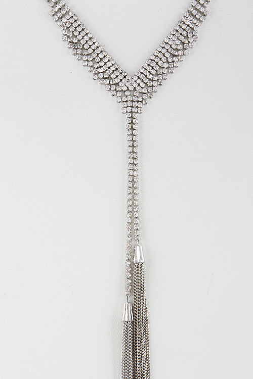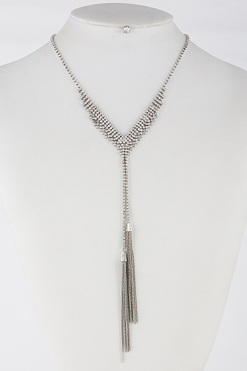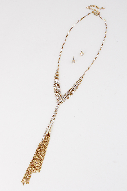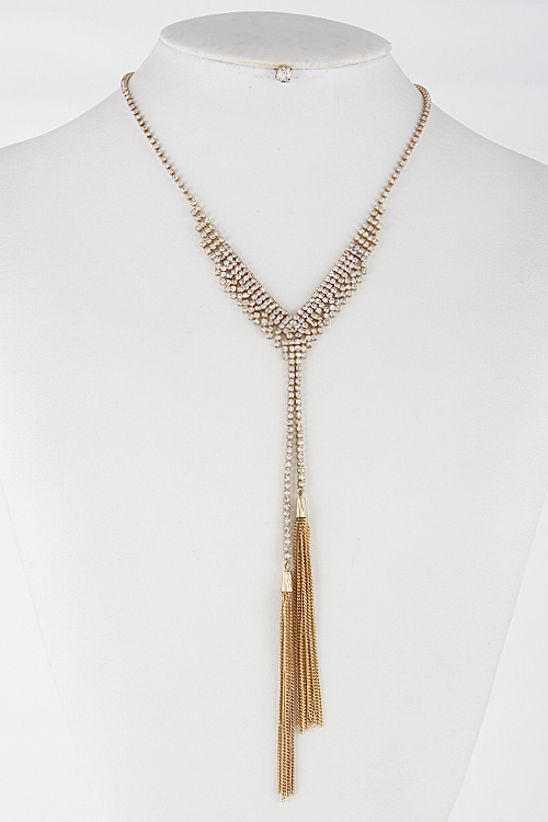 • * Formal Long Necklace With Tassels And Rhinestones Set 6FAG2 * 16" approx