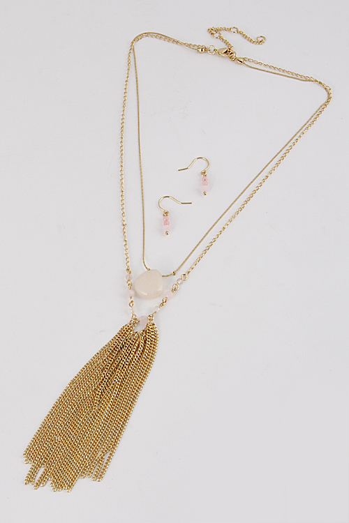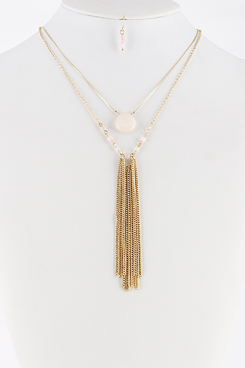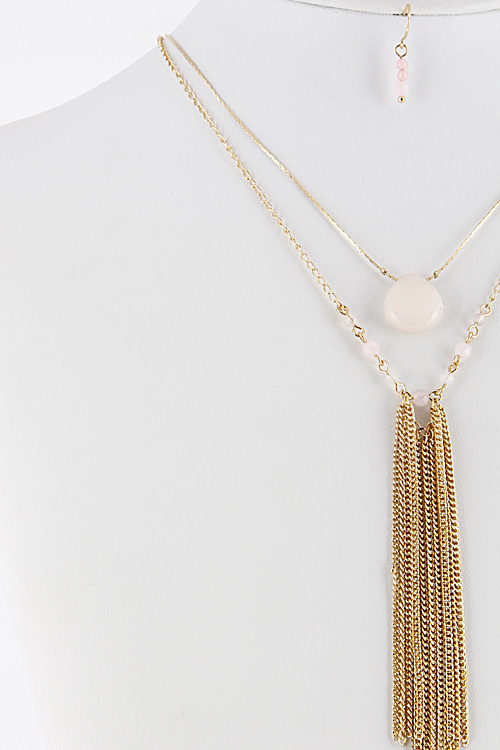 - * Double Layered Necklace With Beads And Fringes Set 6CBH10 * 18" approx.