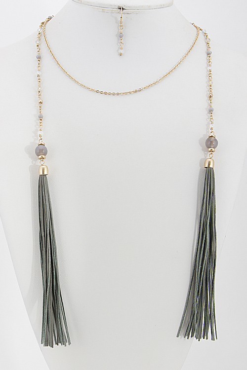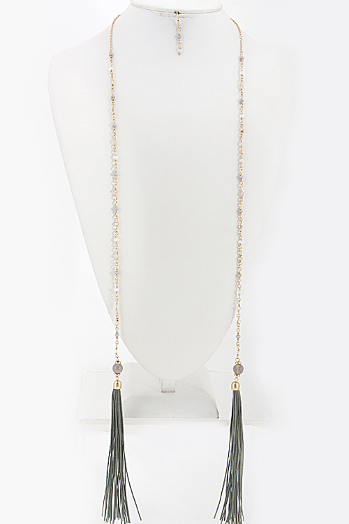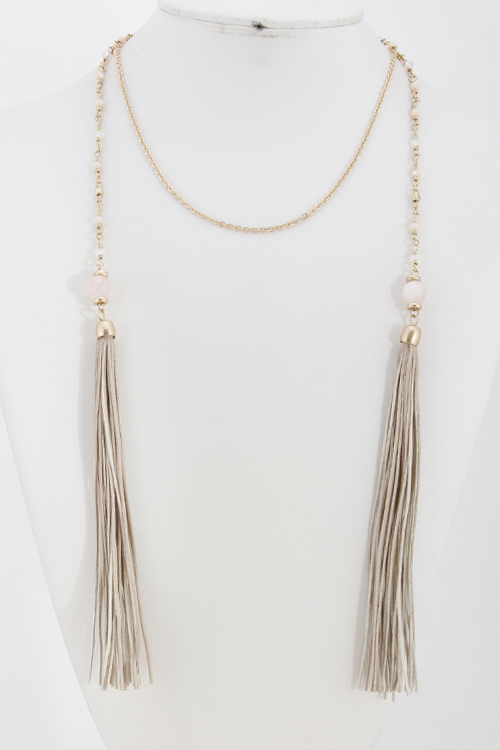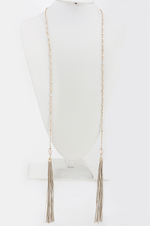• *Lightly Beaded Wrap Around Necklace With Tassel 6BAD7 *34 X 6" approx.