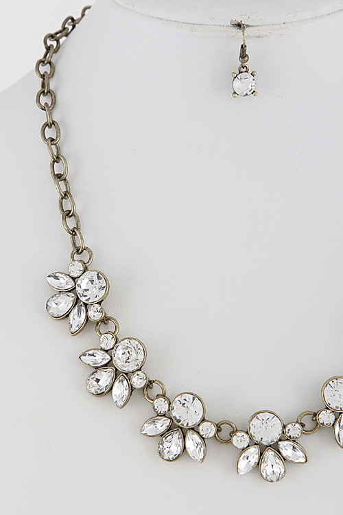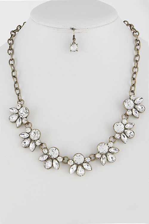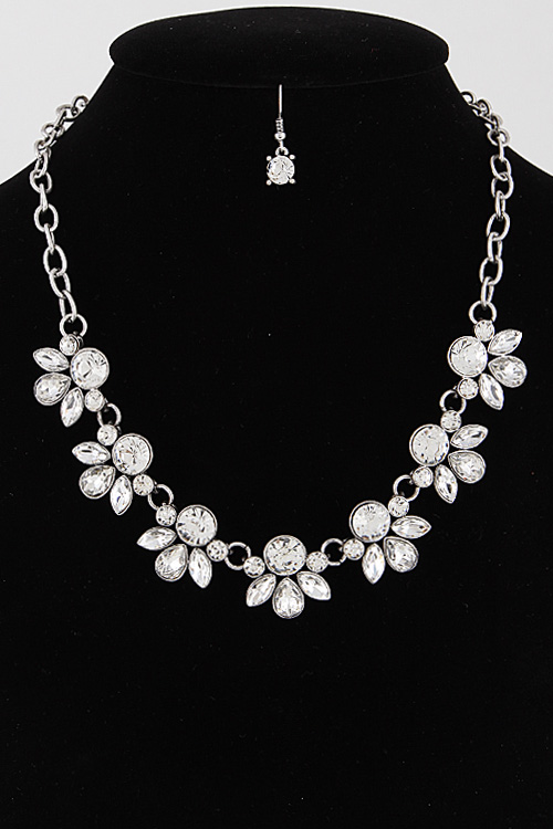 • * Floral Rhinestone Necklace Set 5LBA5 * 18" approx.