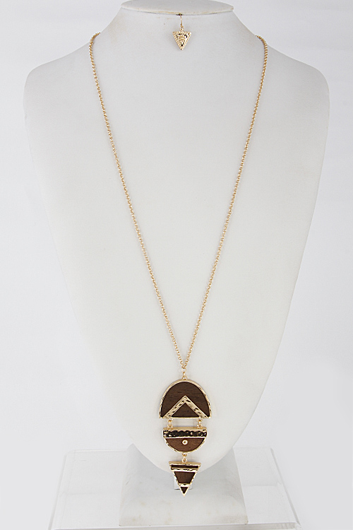- * Aztec Inspired Long Necklace With Wood Set 6EAG9 * 30" approx.