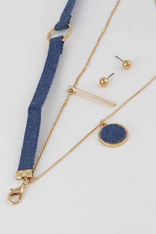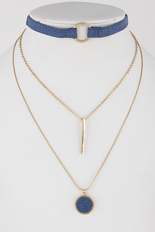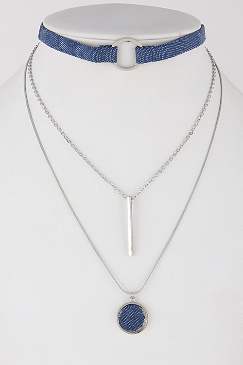 • * Denim Multi Layer Choker Necklace Set 6JCC10 * 0.4 x 12" approx. * 14" approx. * 30" approx.