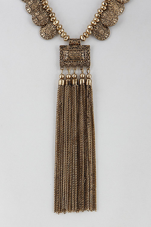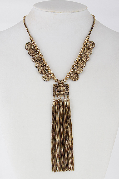• * Antique Inspired Necklace With Tassel Fringed 6EAG9 * 18" approx.