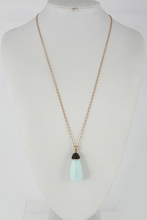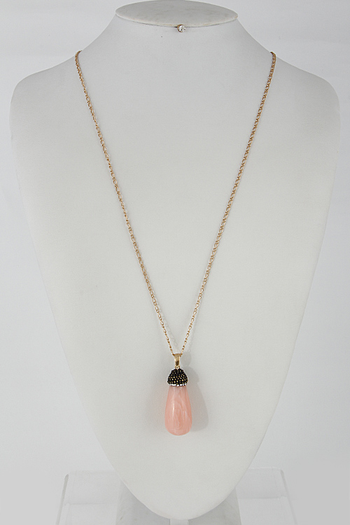 • * Unique Vintage Long Necklace With Stone Set 6DCD10 * 28" approx.
