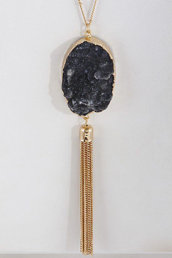 - * Opulent Stone Long Necklace With Tassel 7GAD6