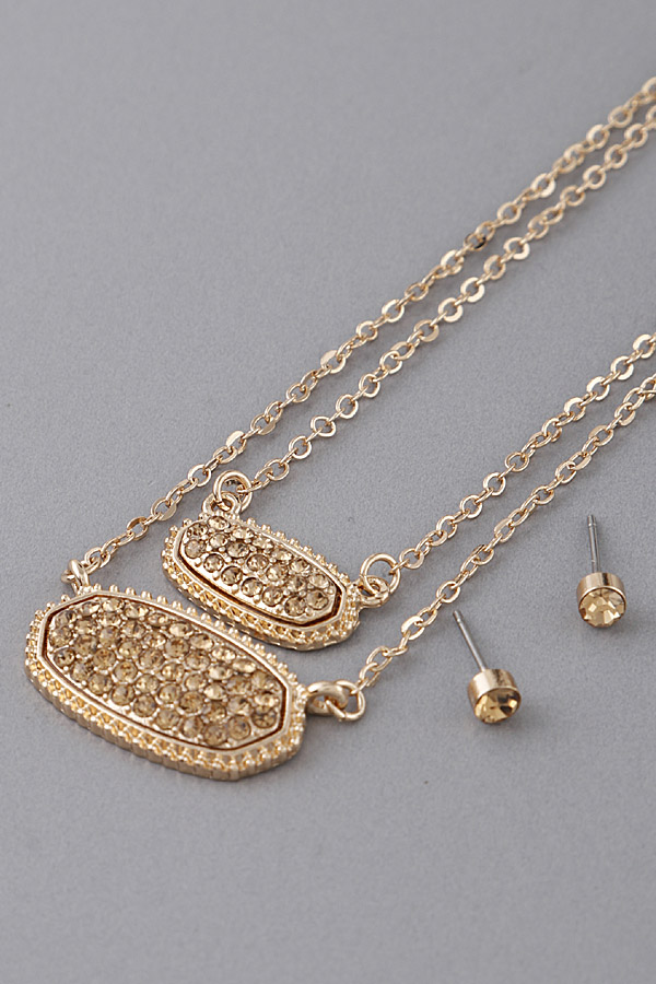 • * Double Layered Oval Pendant Necklace