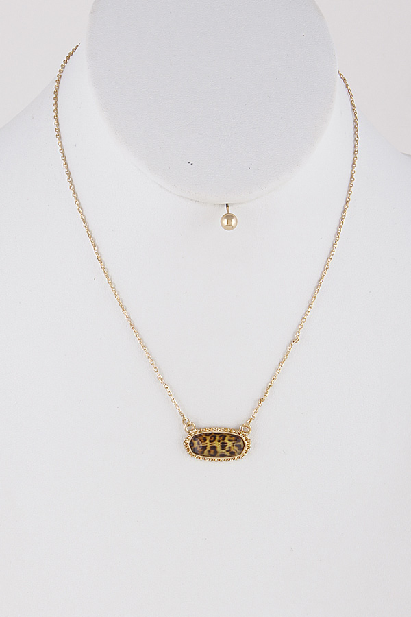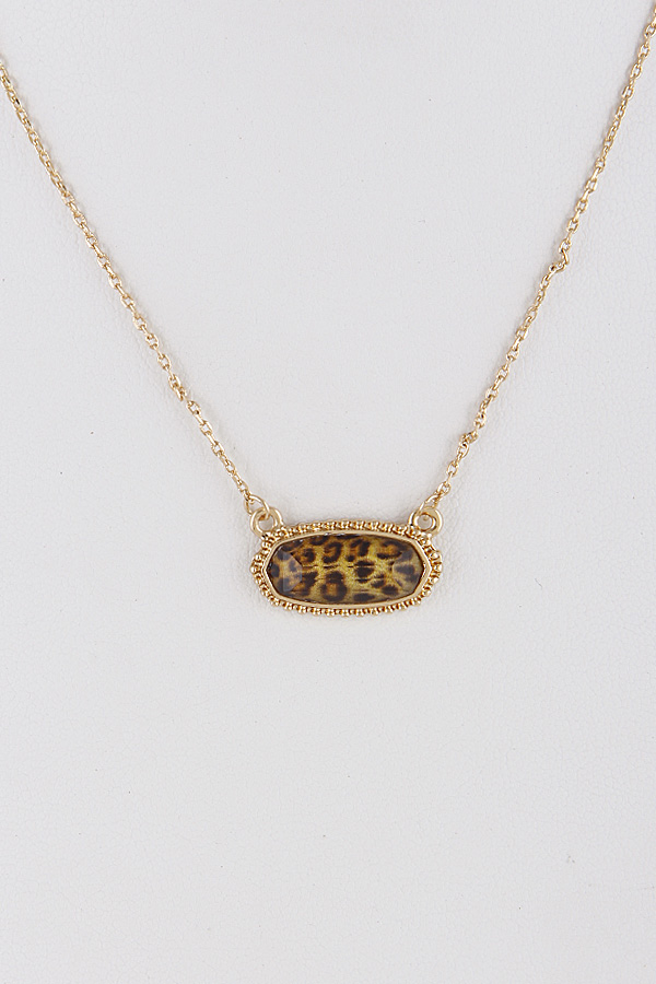 - * Oval Leopard Print Antique Style Necklace 8LBA5