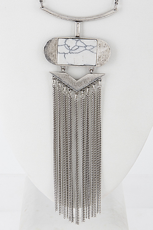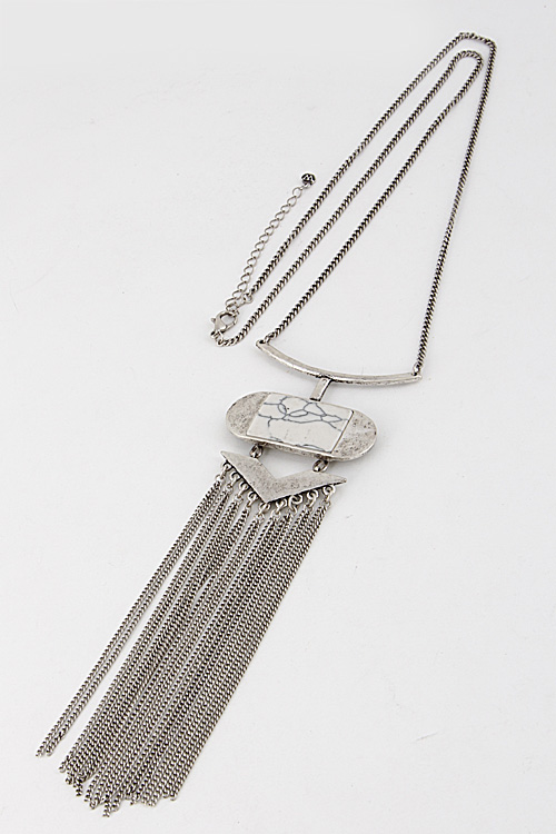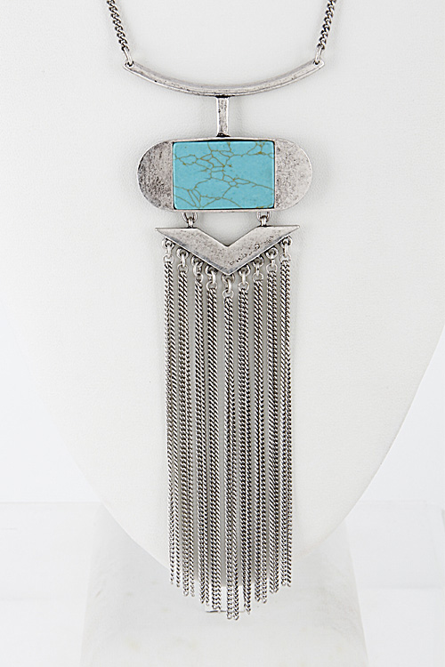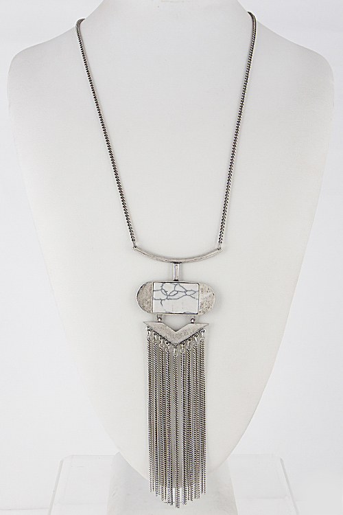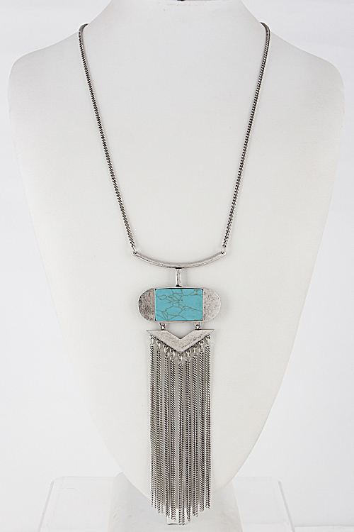 • * Long Necklace With V Fringes And Stone 6EBF7 * 28" approx.