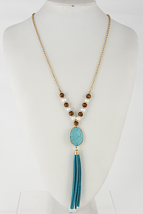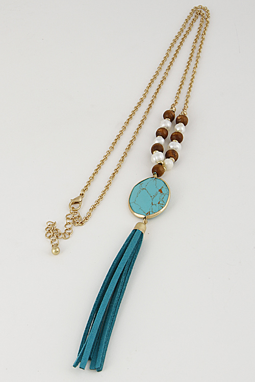 • * Long Necklace With Beads And Tassel 6FAI6 * 30" approx.