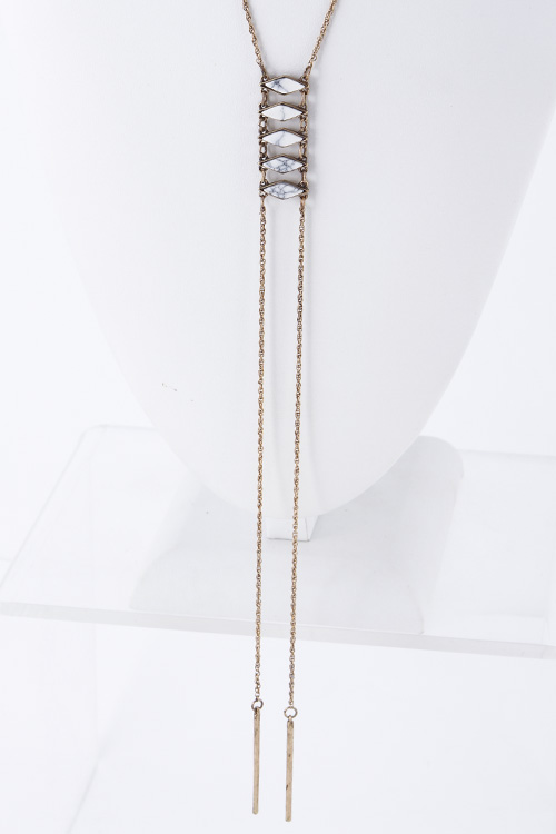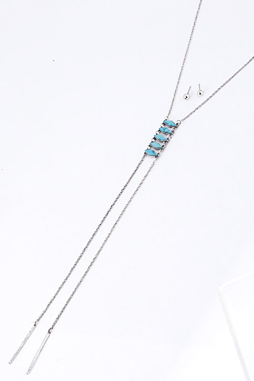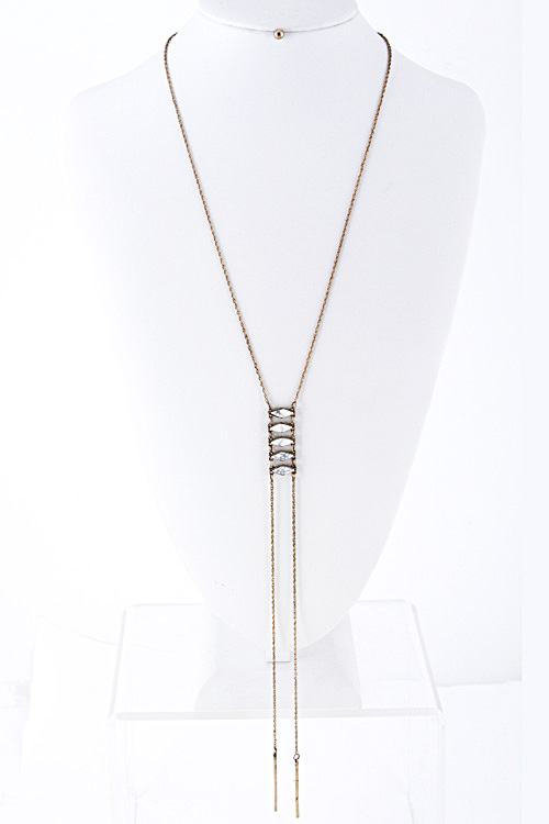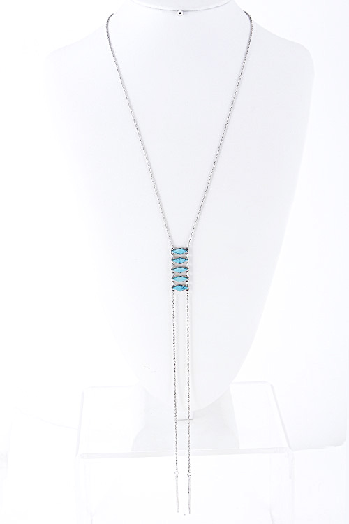 • * Long Thin Line Point Four Stone Necklace 5GAB1 * 22 x 9" approx.