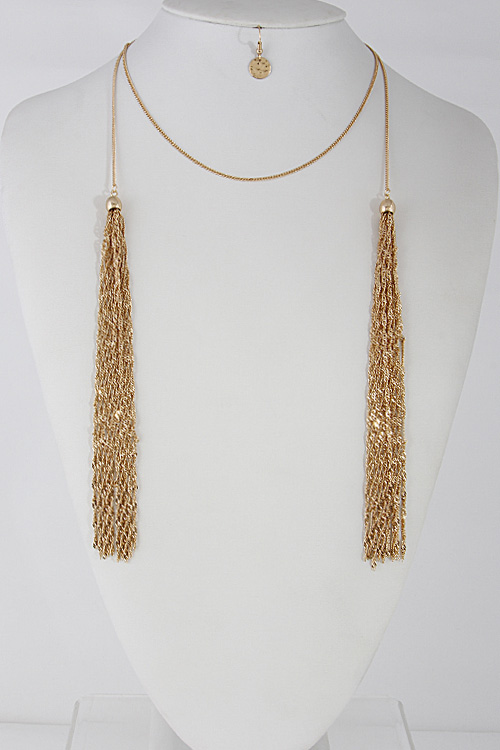 - * Thin Wrap Around Tassel Necklace Set 6CCF9 * 42" approx.