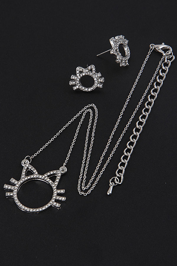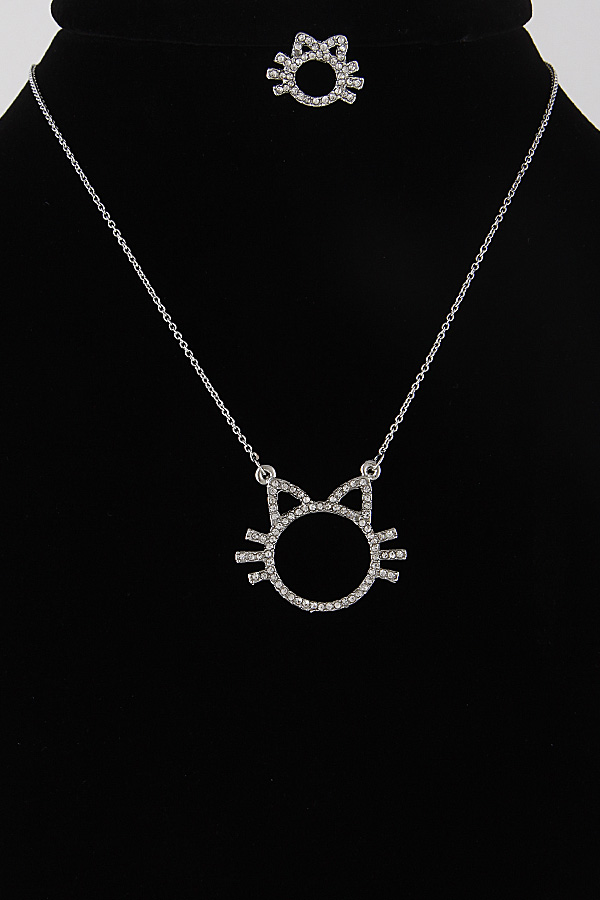 - * Cute Kitty Rhinestone Necklace Set 8CCA1