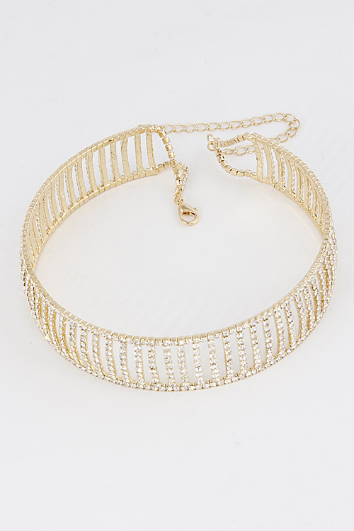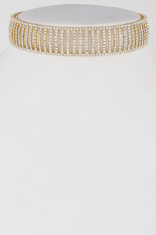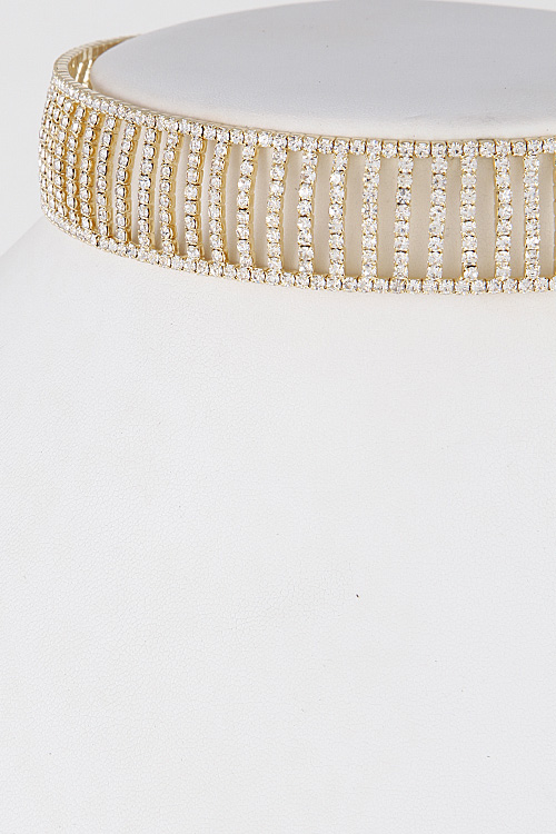 - * Thick Open Rhinestone Choker Necklace 6JBC4 * 0.8 X 10" approx.