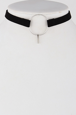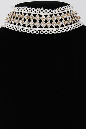 Lace Choker Necklace with Faux Golden Circle Detail 6LAC10