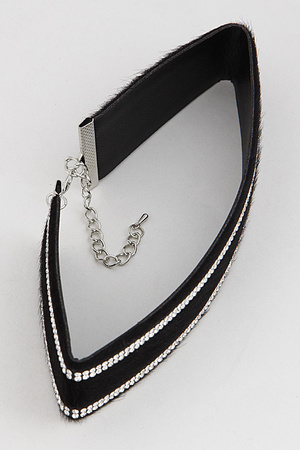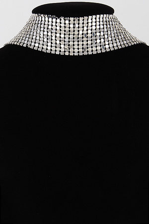 Formal Plain Black Choker Necklace With Rhinestone Details 6LBA6