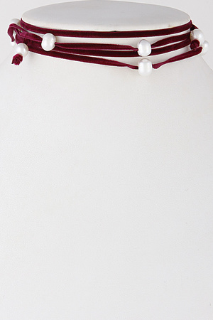 Multi Layer Wrap Choker Necklace with Pearl Details 6KBA10