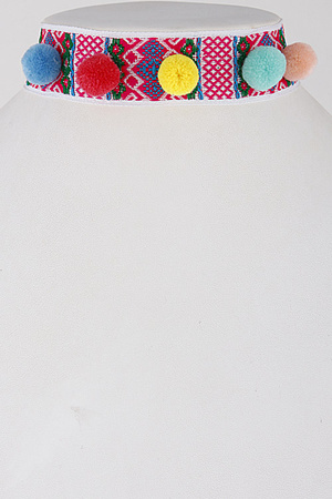 Pom Pom Tribal Inspired Choker Necklace 7CBC7