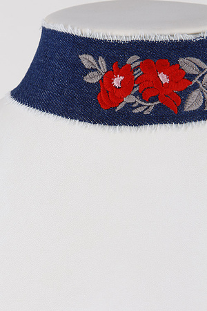 Denim Choker Necklace With Red Roses Details 7CBA9