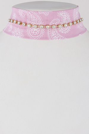 Bandana Choker Necklace With Rhinestones Attached