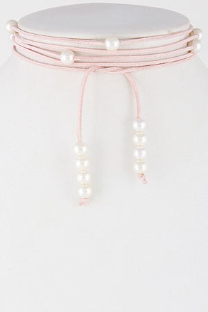 Wrap Choker Necklace With Faux Pearl Details 7ABE7