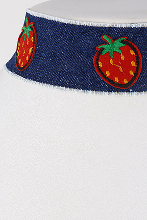 Denim Choker Necklace With Strawberry Beaded Details 7ABD3