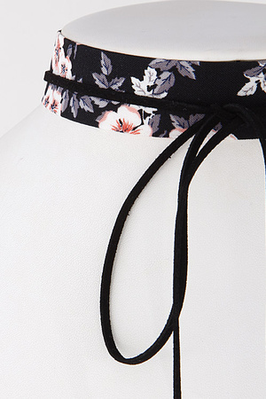 Asian Style Flower Printed Choker Necklace 6LBE7