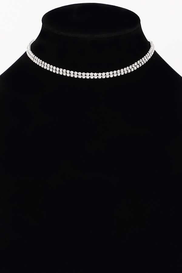 - * Rhinestone Choker Necklace from H&D Accessories features a sleek, close-fitting design adorned with continuous rows of shimmering stones that catch light from every angle. This delicate yet eye-catching piece sits gracefully at the neck, adding a touch of refined glamour to any ensemble. Perfect for elevating evening wear, cocktail parties, or even pairing with casual outfits for a polished look, it transitions seamlessly from day to night. Whether you’re attending a special event or adding sparkle to everyday style, this choker is a timeless accessory that enhances your natural radiance.