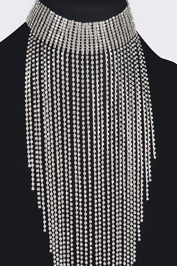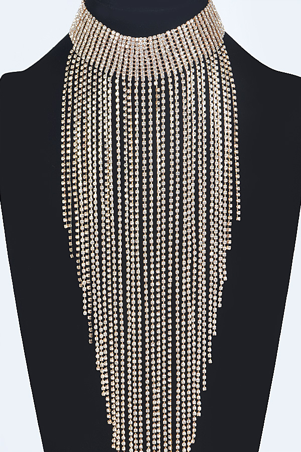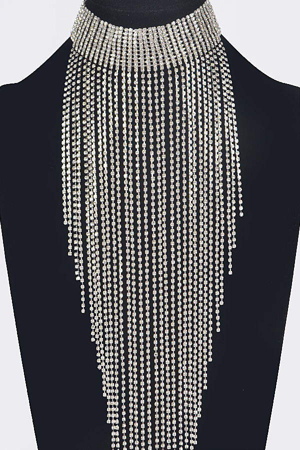 - * Rhinestone Choker Tassle Necklace