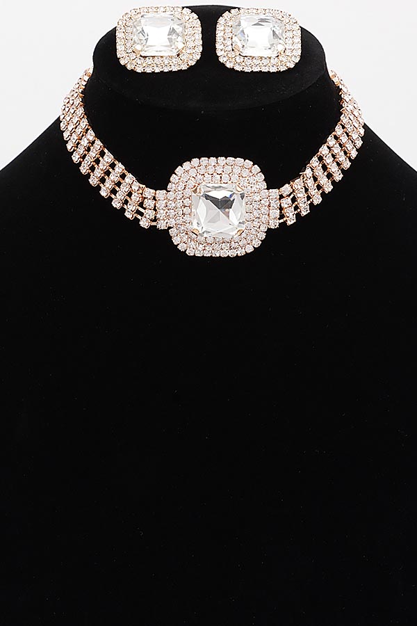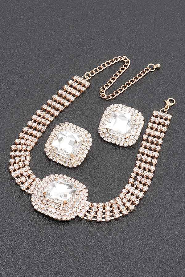 - * Introducing the "Rhinestone Necklace Set" by H&D Accessories, a stunning collection that features a dazzling necklace and matching earrings adorned with exquisite rhinestones. Elevate your style and make a statement with this luxurious set that embodies sophistication and grace.