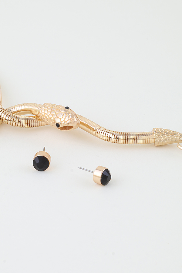 - * This is a Slithering Snake Choker Wrap Necklace from H&D Accessories. It features a lifelike snake design that seems to slither gracefully, with intricate detailing that adds to its realistic and alluring appearance. Along with the necklace, there are matching stud earrings. You can wear this set when attending a costume party, as it will bring a mysterious and bold touch to your look, making you stand out with its unique and eye - catching snake - themed design.